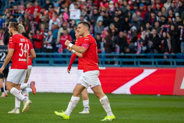 Wisła Kraków - Górnik Łęczna 3:2 (3:2). Bramki: 0:1 Branislav Spacil (11), 1:1 Frederico Duarte (19), 1:2 Mateusz Hołownia (29), 2:2 Marko Bozić (37), 3:2 Julius Ertlthaler (41). Żółta kartka - Wisła Kraków: Angel Rodado. Górnik Łęczna: Bartosz Biedrzycki. Sędzia: Piotr Urban (Warszawa). Widzów: 23 630. (PAP)