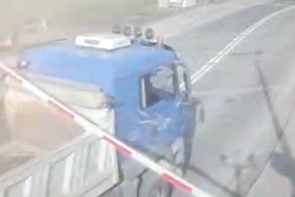 Ciężarówka zatrzymała się na przejeździe kolejowym pod opadającym szlabanem [video]