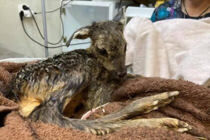 Policjanci uratowali sarniątko od śmierci. Odcięli malucha od pępowiny matki, którą potrącił samochód