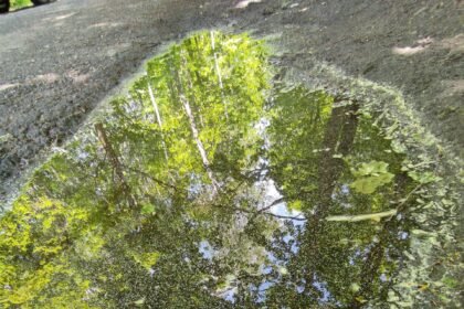 Żółty osad na autach i kałużach