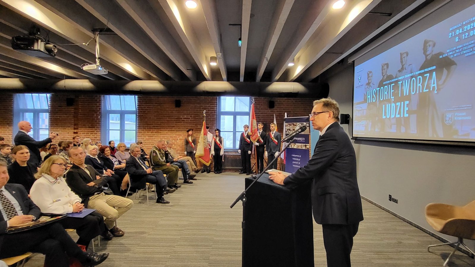 Na otwarcie wystawy do muzealnej auli przybyło ponad sto osób. Obecni byli m.in. przedstawiciele władz miasta i województwa, członkowie organizacji kombatanckich, delegacje krakowskich jednostek wojskowych (w tym 2 Korpusu Polskiego – Dowództwa Komponentu Lądowego), harcerze i młodzież szkolna (w tym uczniowie klasy mundurowej z XXV Liceum Ogólnokształcącego z Krakowa). Poczty sztandarowe wystawiły Szkoła Podstawowa nr 2 im. Bohaterów Monte Cassino z Kęt oraz Zespół Szkół Elektrycznych nr 2 z Krakowa. Przybyła także delegacja ze Szkoły Podstawowej im. płk Bronisławy Wysłouchowej z Szabatowskich w Cieszanowie z dyrekcją na czele.