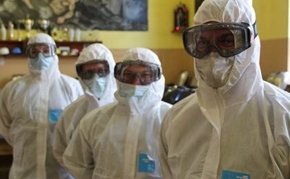 Ratownicy górniczy pracują w szpitalu tymczasowym w Pyrzowicach