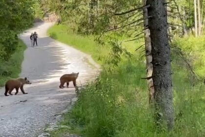 Niedźwiedzica z trójką młodych na szlaku w Dolinie Chochołowskiej