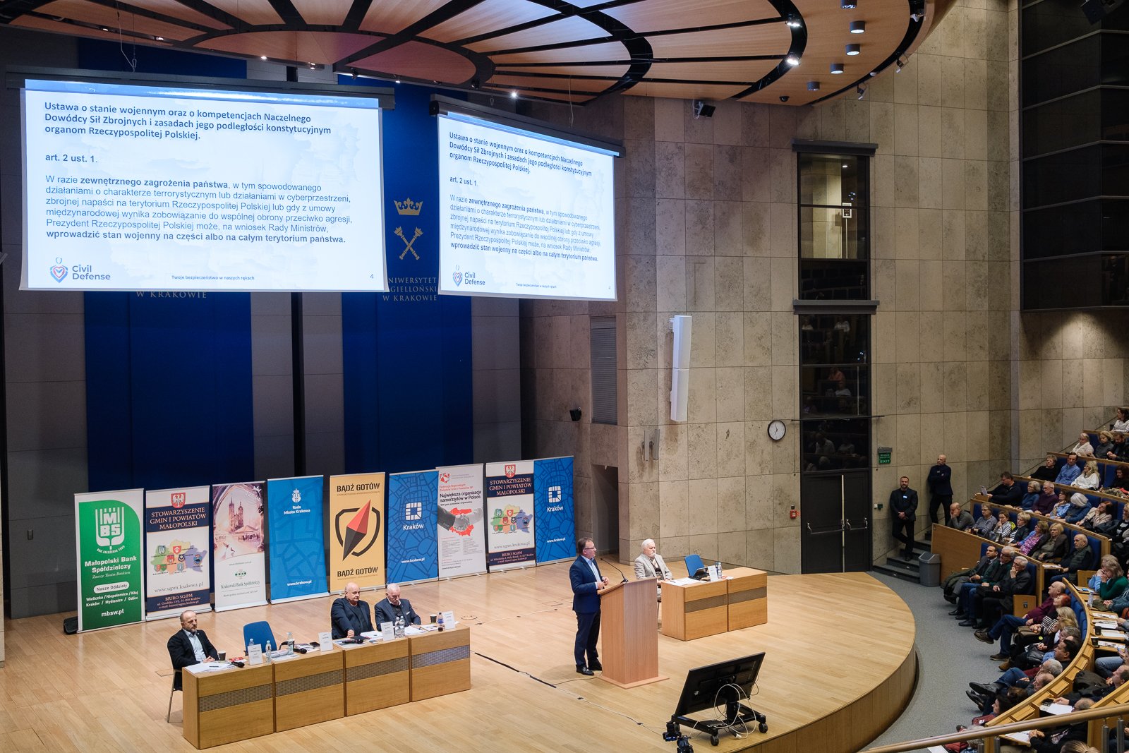 – Nie jesteśmy w stanie w ciągu roku, dwóch czy trzech lat naprawić opóźnień trzydziesto, czterdziestoletnich w zakresie obrony cywilnej – mówił gen. Bogdan Klimek. Przyznał, że w zakresie zapewnienia miejsc ukrycia nie jest najlepiej – na 500 skontrolowanych obiektów, które powinny spełniać funkcję ukrycia, zaledwie kilkanaście mogłoby spełniać kryteria, a do tego po kosztownych inwestycjach. Dyrektor Wydziału Bezpieczeństwa i Zarządzania Kryzysowego Urzędu Miasta Krakowa radził, by krakowianie miejsc ukrycia szukali w aplikacji schronowej.